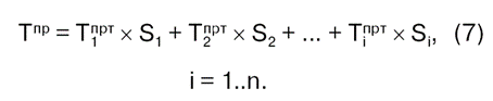Далее трудоемкость проекта запишем как сумму произведений трудоемкости прототипа и отношение носителей затрат проекта и прототипа: