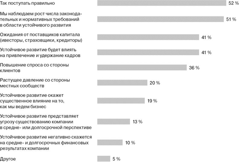Вопрос: какие ключевые факторы побуждают органы управления обсуждать проблемы, связанные с устойчивым развитием?