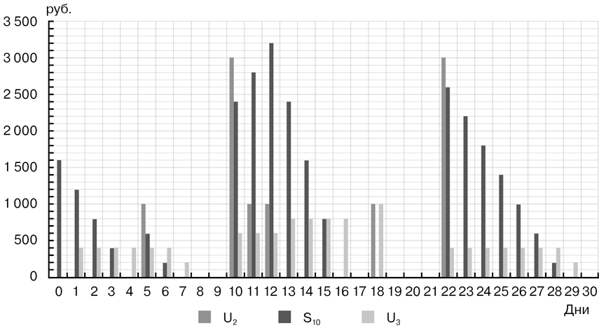 Более подробное движение сырья и материалов через склад отражено на рис. 3. в виде гистограммы.