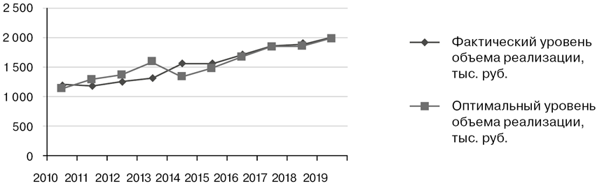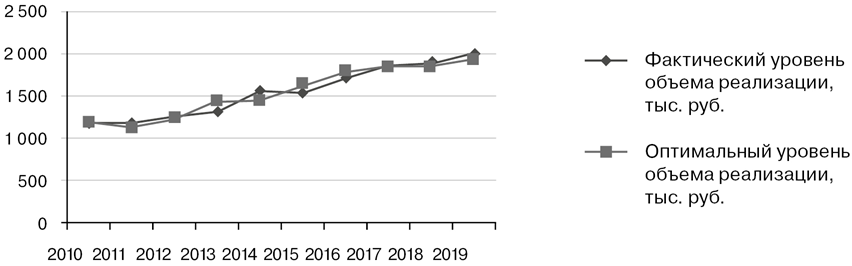 Таким образом, наблюдается устойчивая положительная динамика объема реализации товара, которая может иметь место из-за повышения затрат на рекламу и индекса потребительских расходов. Другими словами, проведенный анализ продемонстрировал очевидное влияние масштабов рекламы на популярность продукции предприятия и то, что это основной фактор роста продаж в рамках тактического временного горизонта.