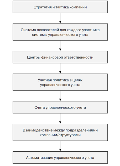 На рисунке приведены основные элементы системы управленческого учета компании: